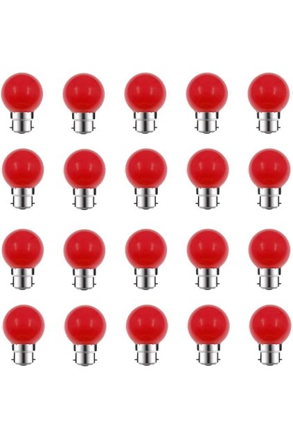 ZFQ B22 farebné LED žiarovky - 20 kusov, farba červená 2W ekvivalent 20W B22 bajonetové LED reťazové žiarovky meniace farbu LED vianočné žiarovky s päticou BC, pre domáci bar,...