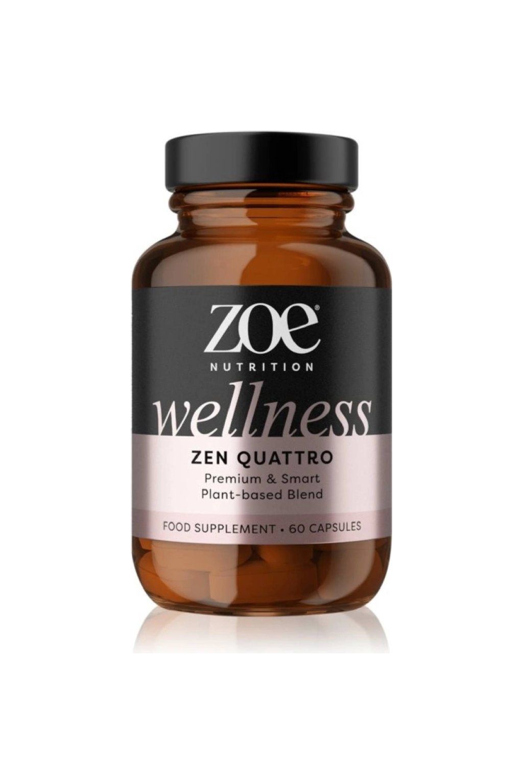 Doplnok stravy pre ženy ZOE Wellness Zen Quattro kombinuje KSM-66 ashwagandhu (300 mg) s lion's mane (100 mg) , rhodiolou (50 mg) a piperínom pre lepšie vstrebávanie.